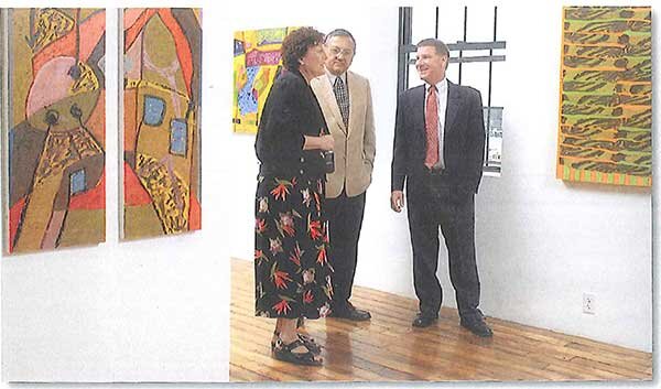 Derek Cavanaugh, MHIC Senior Investment Officer (right) and Al Caldarelli, Executive Director of East Boston Community Development Corporation, are pictured here with painter/photographer Ejay Kahn, enjoying a tour of Kahn Studios, a gallery of visual and literary art, located on the first floor of Atlantic Works.